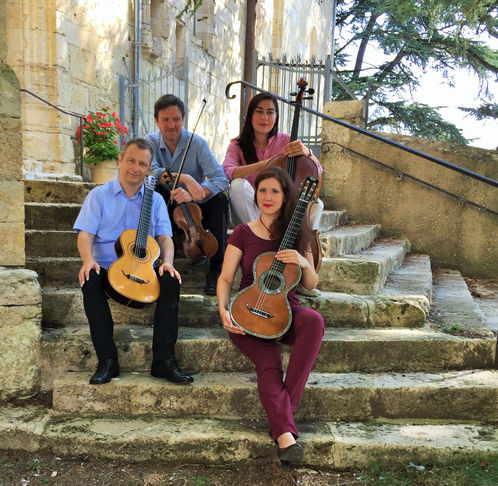 The Cantiga Ensemble is an original and rare formation, made up of 2 guitars, violin and cello, which allows to discover a forgotten repertoire and to revisit famous works with a new light.